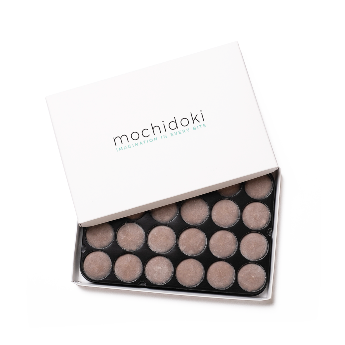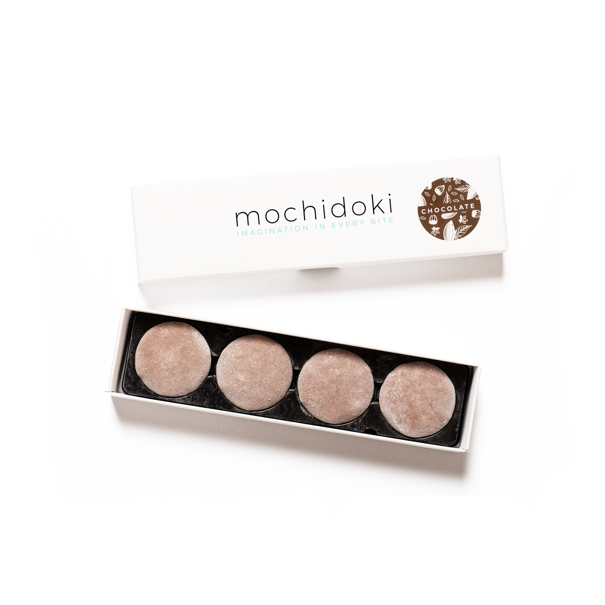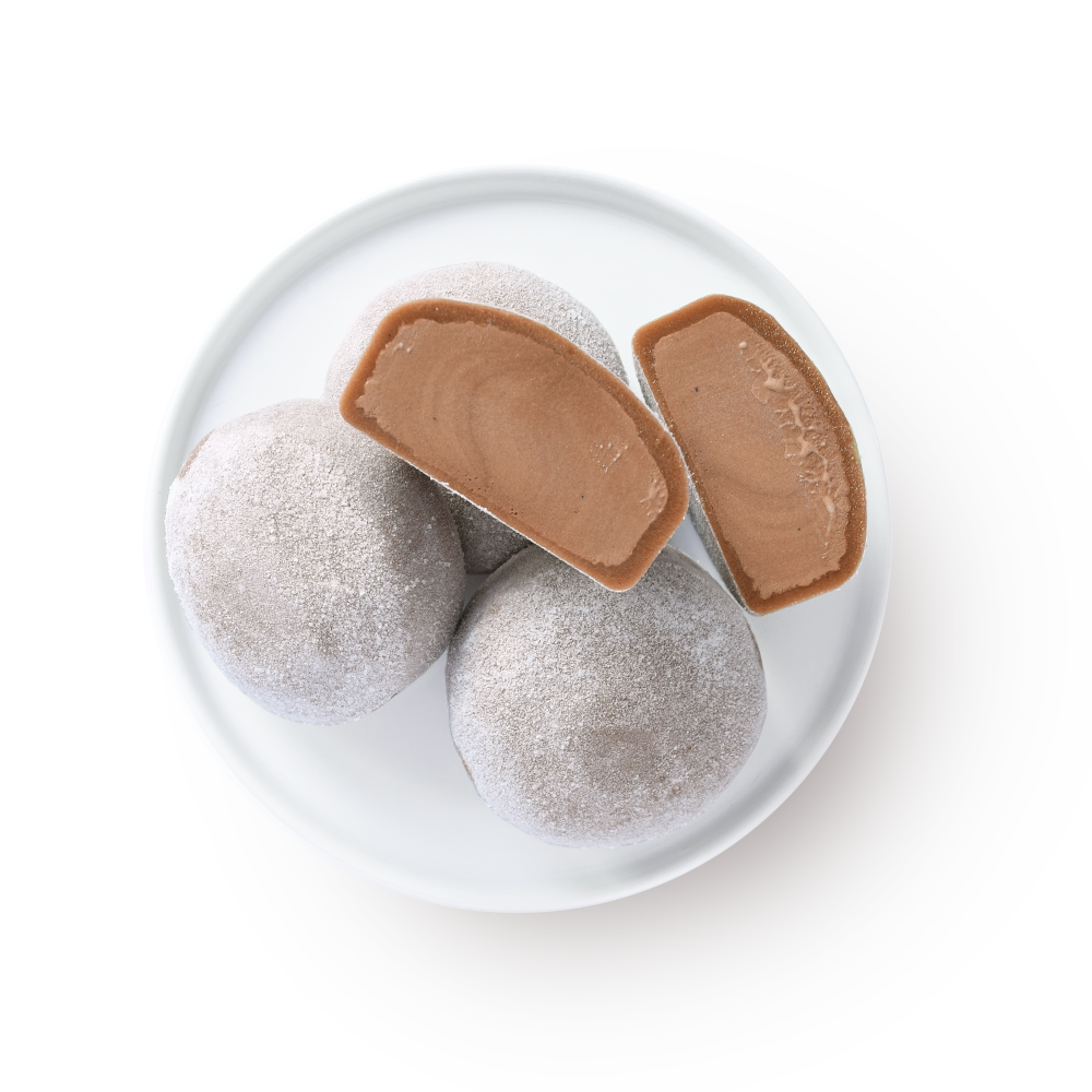 Mochi Dough Ingredients: (sugar, rice flour, water, cocoa (processed with alkali), vanilla extract, salt, calcium sulfite, enzymes)