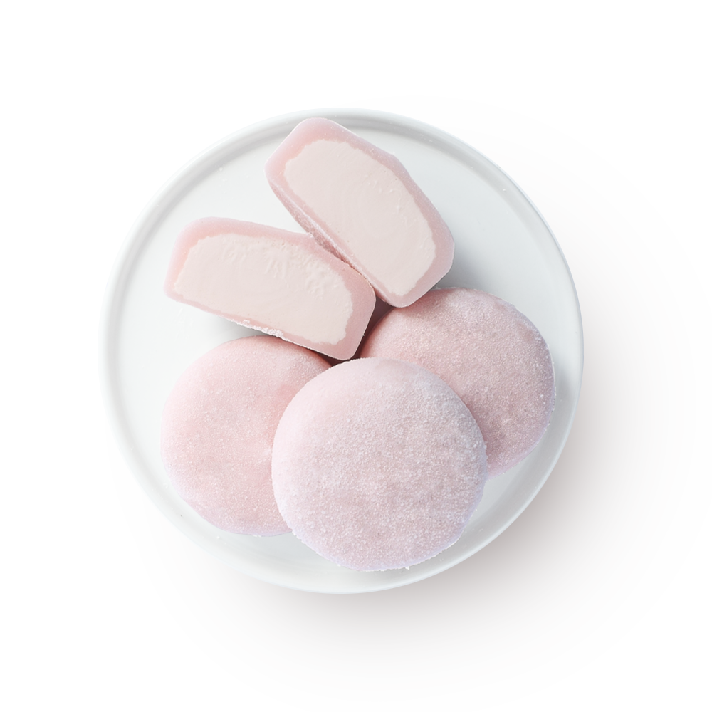 Mochi Dough Ingredients: Sugar, rice flour, water, vanilla extract, salt, beet juice, calcium sulfite, enzymes